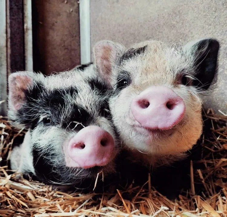 L’un de nos premiers sauvetages fut 4 petits cochons gottingens, initialement destinés à la vivisection. Très fièrement, nous nommions nos deux petites femelles FLO et AUDREY 😊